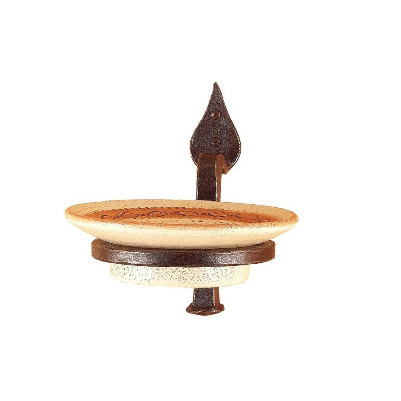 Mydelniczka z uchwytem ręcznie kutym z żelaza i ręcznie wykonanej ozdobionej ceramiki.