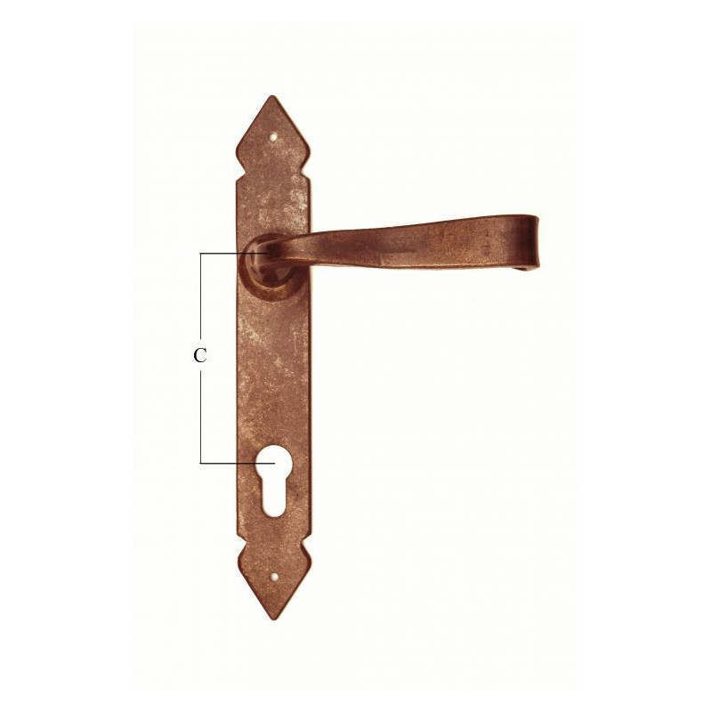 Klamka żelazna jest ręcznie kuta zgodnie z tradycyjną obróbką metali. Dzięki specjalnemu procesowi żelazo jest postarzane w sposób naturalny, bez używania koloryzujących farb czy też kolorowych wosków.
