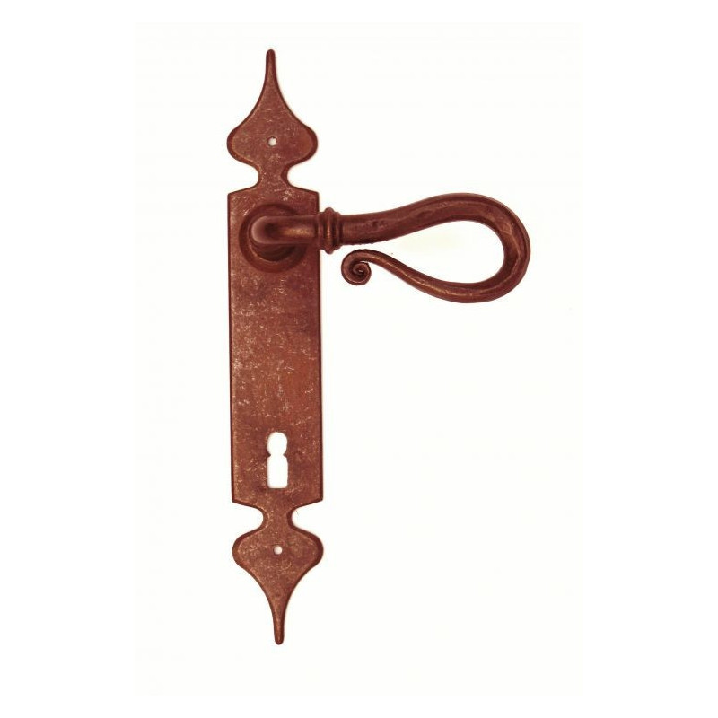 Klamka żelazna jest ręcznie kuta zgodnie z tradycyjną obróbką metali. Dzięki specjalnemu procesowi żelazo jest postarzane w sposób naturalny, bez używania koloryzujących farb czy też kolorowych wosków.