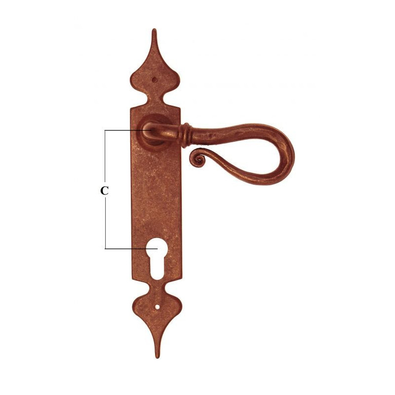Klamka żelazna jest ręcznie kuta zgodnie z tradycyjną obróbką metali. Dzięki specjalnemu procesowi żelazo jest postarzane w sposób naturalny, bez używania koloryzujących farb czy też kolorowych wosków.