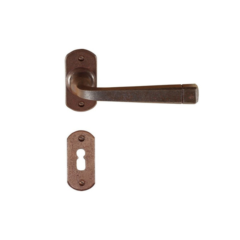 Klamka żelazna jest ręcznie kuta zgodnie z tradycyjną obróbką metali. Dzięki specjalnemu procesowi żelazo jest postarzane w sposób naturalny, bez używania koloryzujących farb czy też kolorowych wosków.