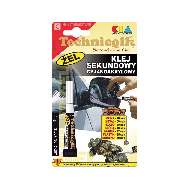 Jednoskładnikowy, bezbarwny o konsystencji żelu klej na bazie cyjanoakrylanu etylu o najwyższych parametrach kleju technicznego, sieciującego pod wpływem wilgoci. Dzięki dużej lepkości i właściwością tiksotropowym nie spływa z powierzchni pionowych i nie zostaje wchłonięty przez powierzchnie porowate. Skleja bardzo mocno w ciągu kilku sekund metal, gumę, porcelanę i wiele tworzyw sztucznych. 2g