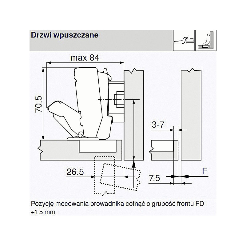 Zawias puszkowy BLUM do drzwi WEWNĘTRZNYCH 170°