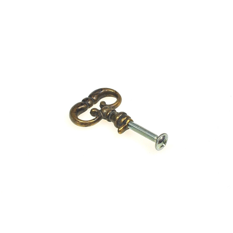 Mosiężny klucz "zerowy" , czyli uchwyt meblowy montowany w kluczynce (szyldzie) w formie klucza - gwint M4. Uchwyt (klucz zerowy) markuje prawdziwy klucz w sytuacji gdy nie jest konieczne montowanie zamka, np w szufladach, które nie będą zamykane. Po montażu sprawia wrażenie włożonego klucza do zamka, w rzeczywistości będąc jedynie uchwytem. Doskonały przy stylizacji mebli.