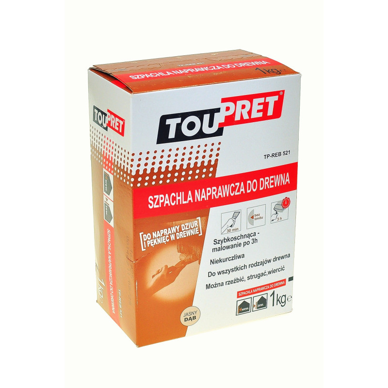 Szpachla naprawcza do drewna: masa w proszku do stosowania zewnętrznego i wewnętrznego, na bazie wypełniaczy mineralnych i środków wiążących.